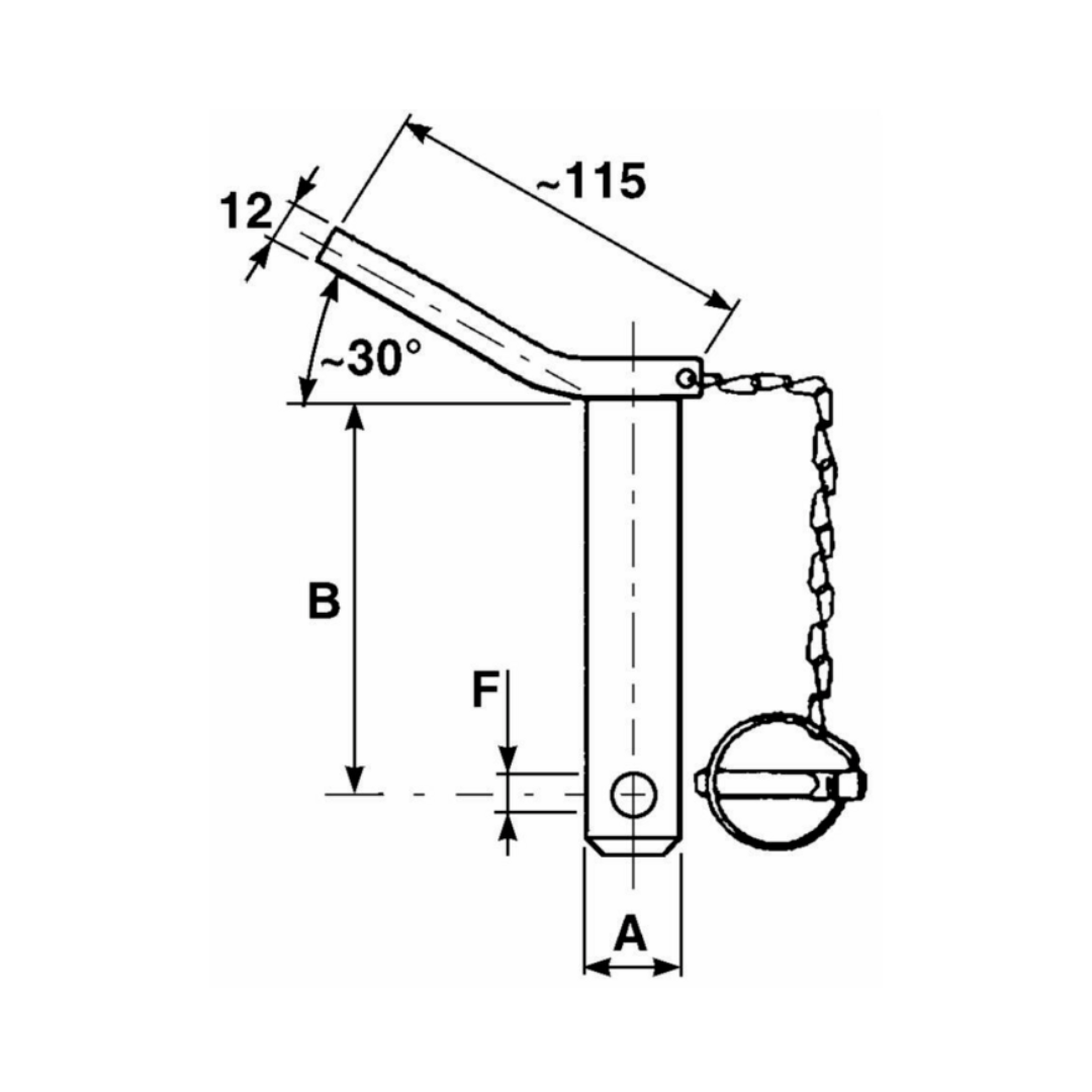 Perno con maniglia, spina e catena ø 25x130 mm in acciaio per attacchi a tre punti attrezzature agricole
