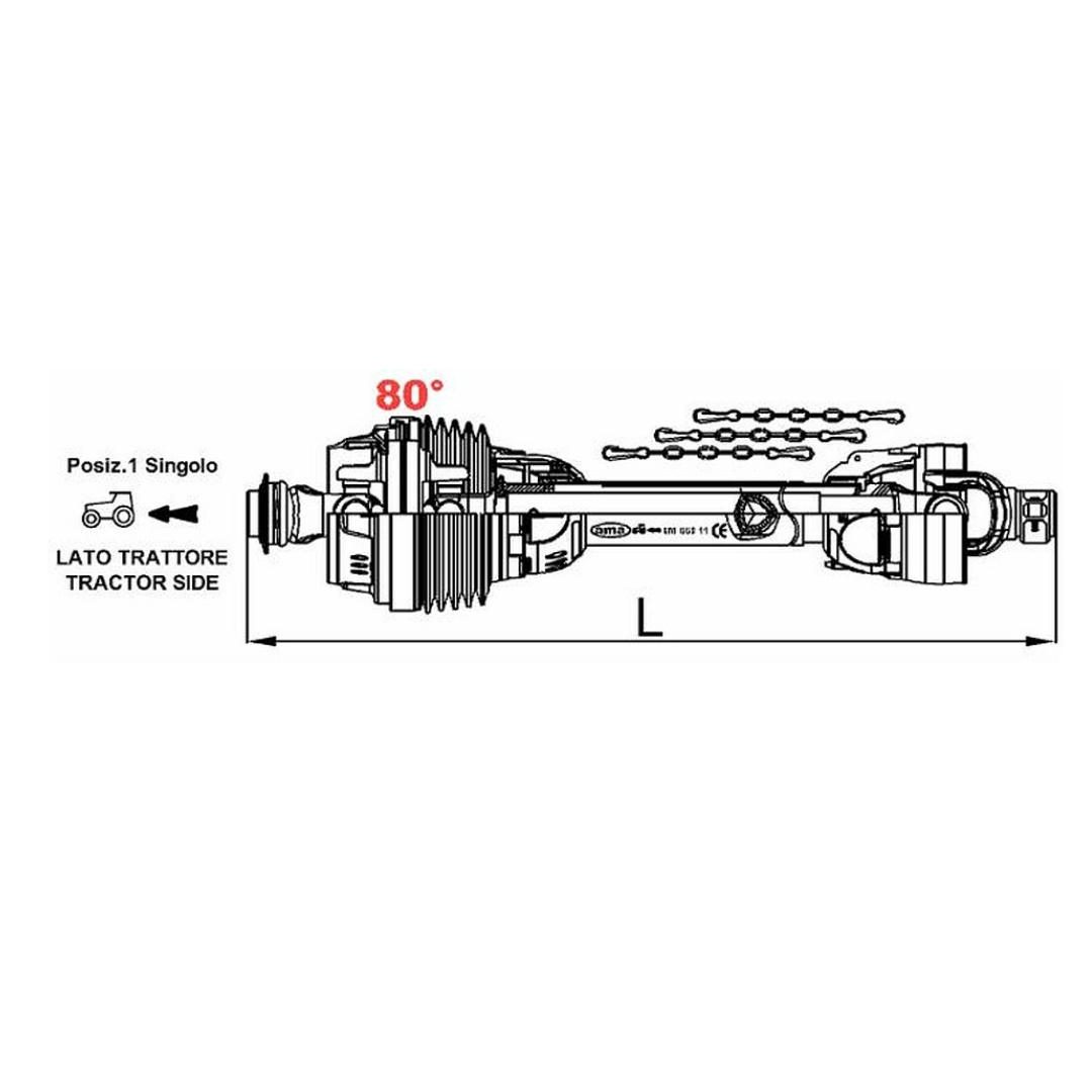 Albero Giunto Cardano omocinetico singolo Ama Cardan cat. 6 140cm. Omologato CE.