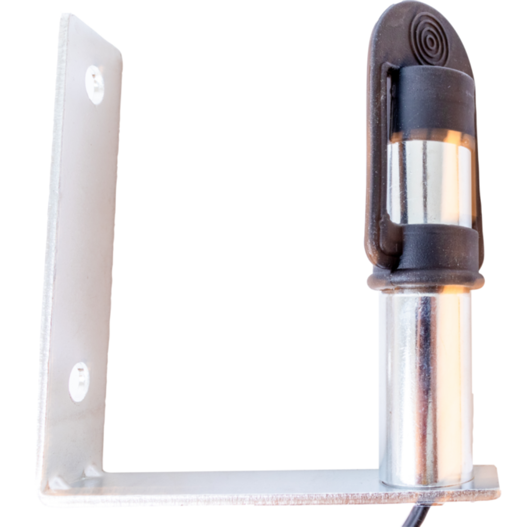 Piantone in metallo zincato di supporto per lampeggiante, con staffa a L, altezza 121 mm (senza cappuccio) con diametro 24 mm.